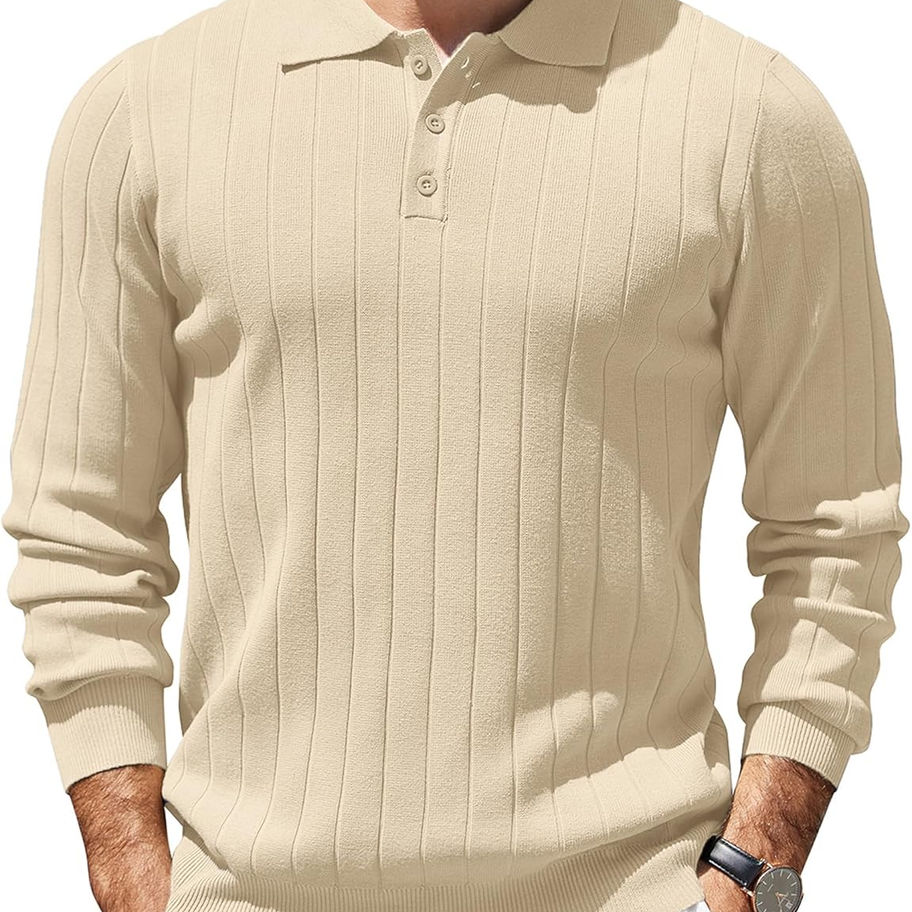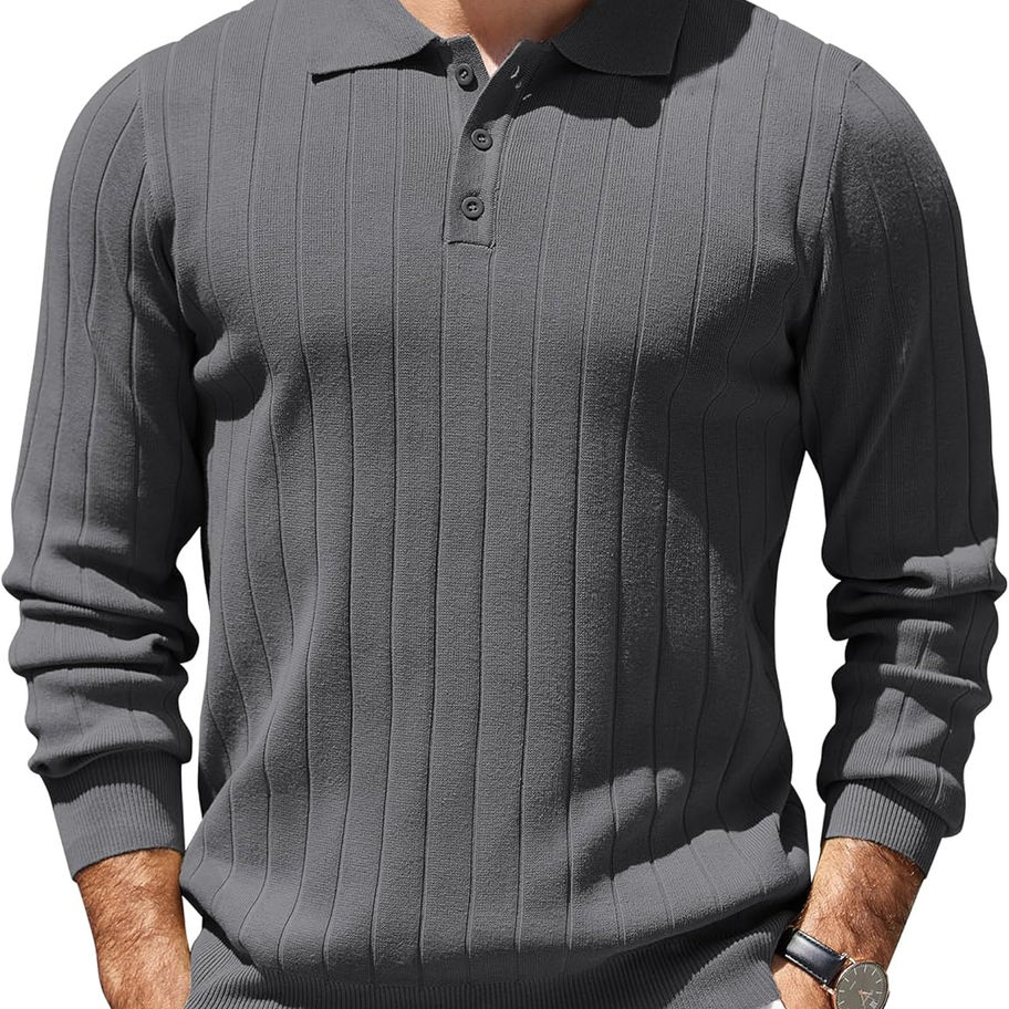 COOFANDY Suéter tipo polo de punto para hombre, de manga larga, ligero, informa