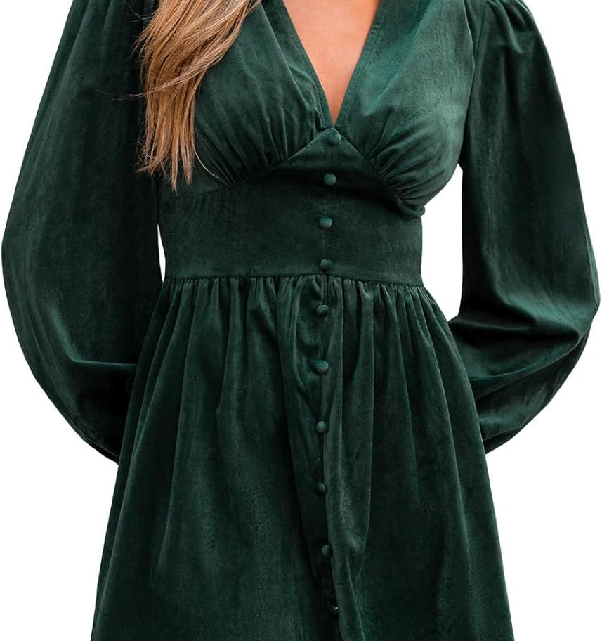 CUPSHE Mini vestidos de fiesta para mujer, cuello en V, botones, manga larga, f