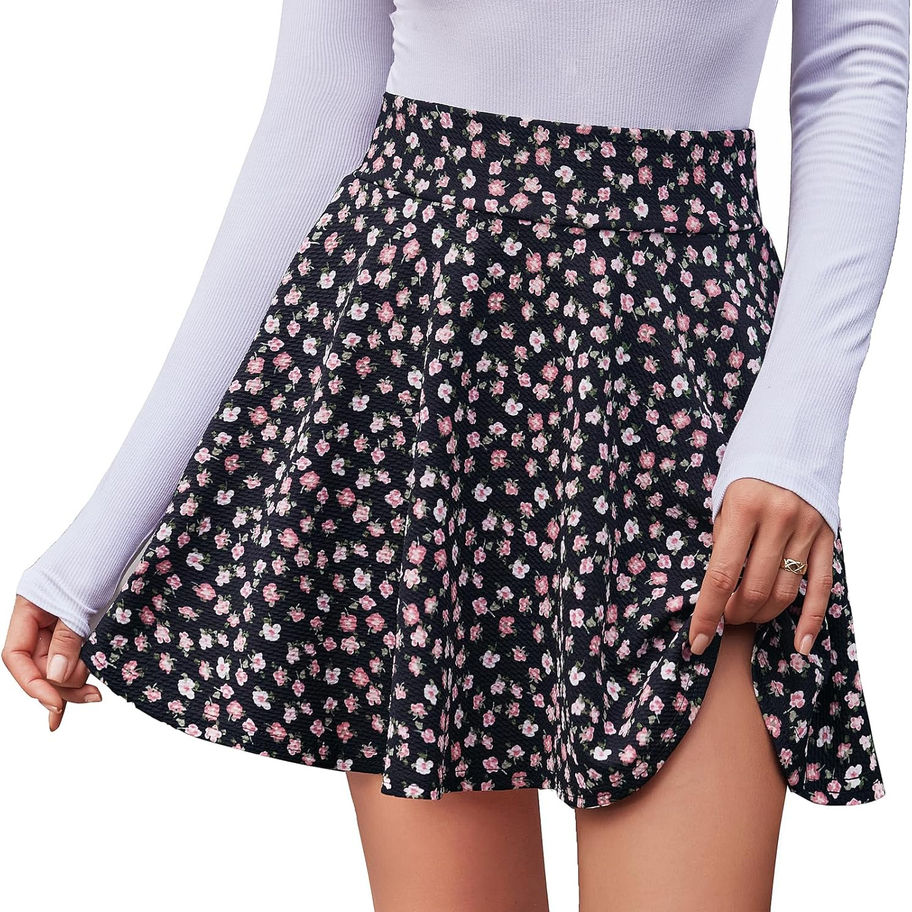 DJT FASHION - Minifalda informal elástica tipo skater, plisada y acampanada con