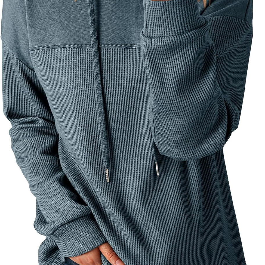 Dokotoo Sudaderas con capucha para mujer, de punto gofre, manga larga, con cord