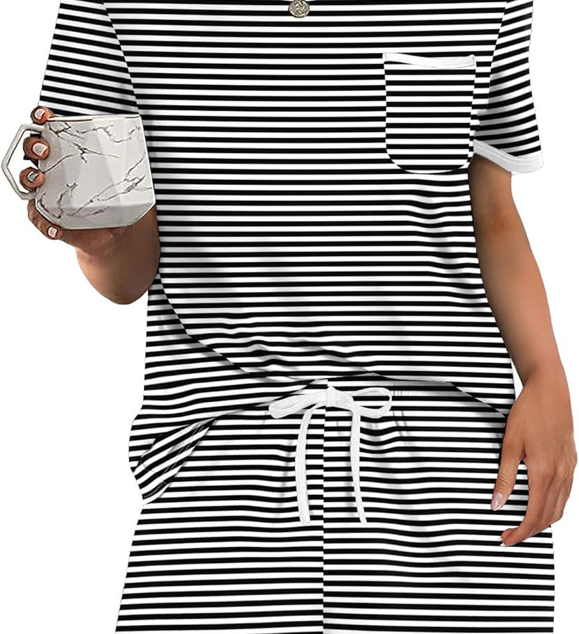 Ekouaer - Conjunto de pijama de 2 piezas para mujer, camiseta de manga corta y