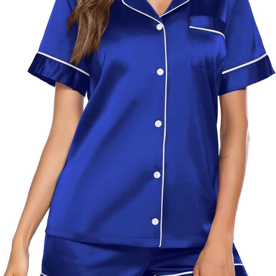 Ekouaer Pijama de satén para mujer, con botones, ropa de dormir de suave tacto