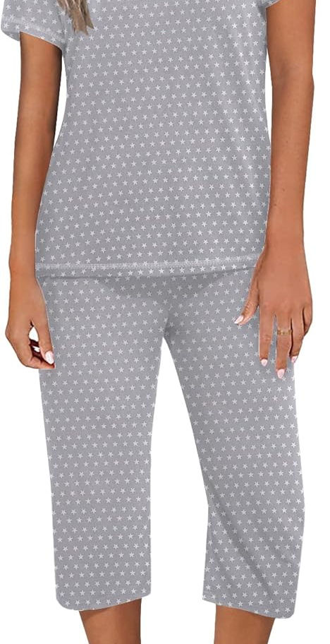 Ekouaer Pijamas para mujer, dos piezas, manga corta y cuello en V, pantalón cap