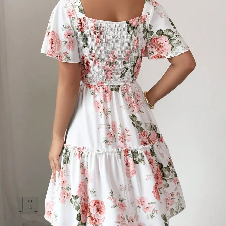 Elenzga Vestido casual con estampado floral, volantes en el bajo y mangas corta