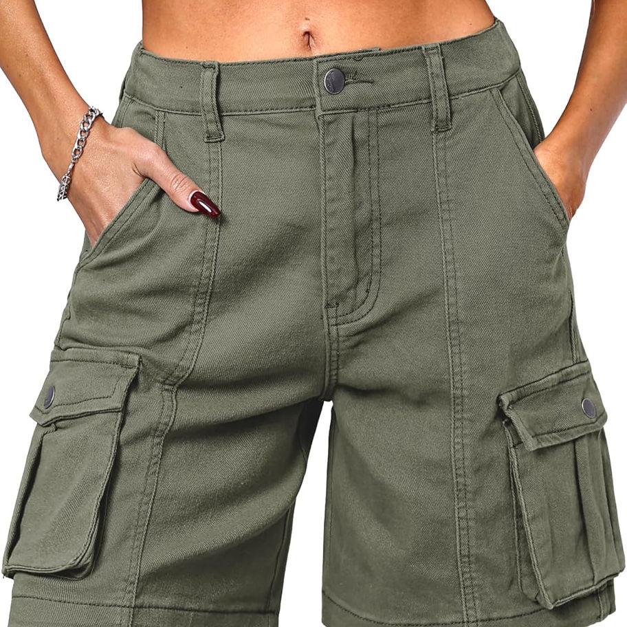 ELLEVEN Bermudas - Pantalones cortos tipo cargo para mujer, cintura alta elásti