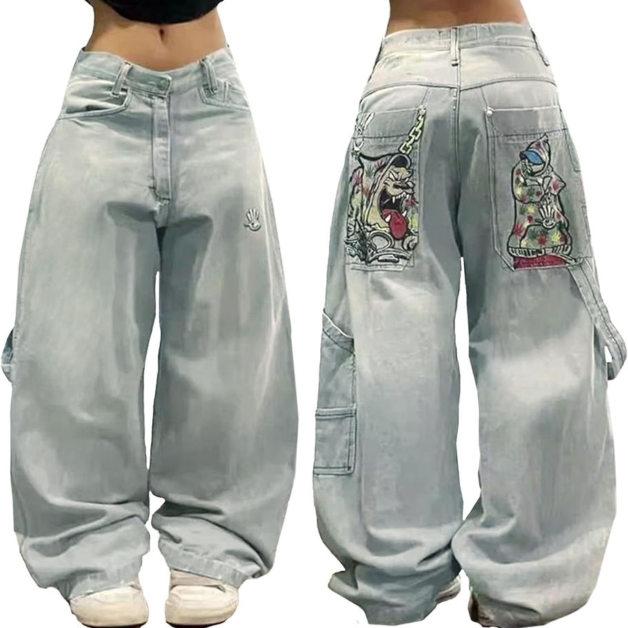 Material de los pantalones de mezclilla Hip Hop: estos jeans holgados están hechos con 60% algodón, 10% viscosa, 30% poliéster, tela suave y transpirable, por lo que te sentirás libre en todas las posiciones cuando estés sentado o en cuclillas
