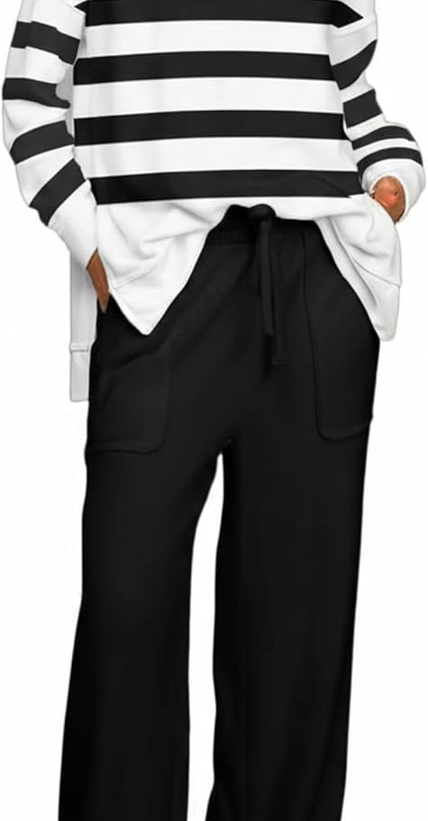 ✔Diseño: conjunto de dos piezas/camiseta de manga larga/cuello redondo/color sólido/pantalones de pierna larga/pie ancho/ligero/ajuste suelto/conjunto de dos piezas/conjunto de ropa de descanso/conjunto de jogger/conjunto de jogger/cintura alta/trajes de invierno para mujer/ropa de moda de otoño para mujer 2023