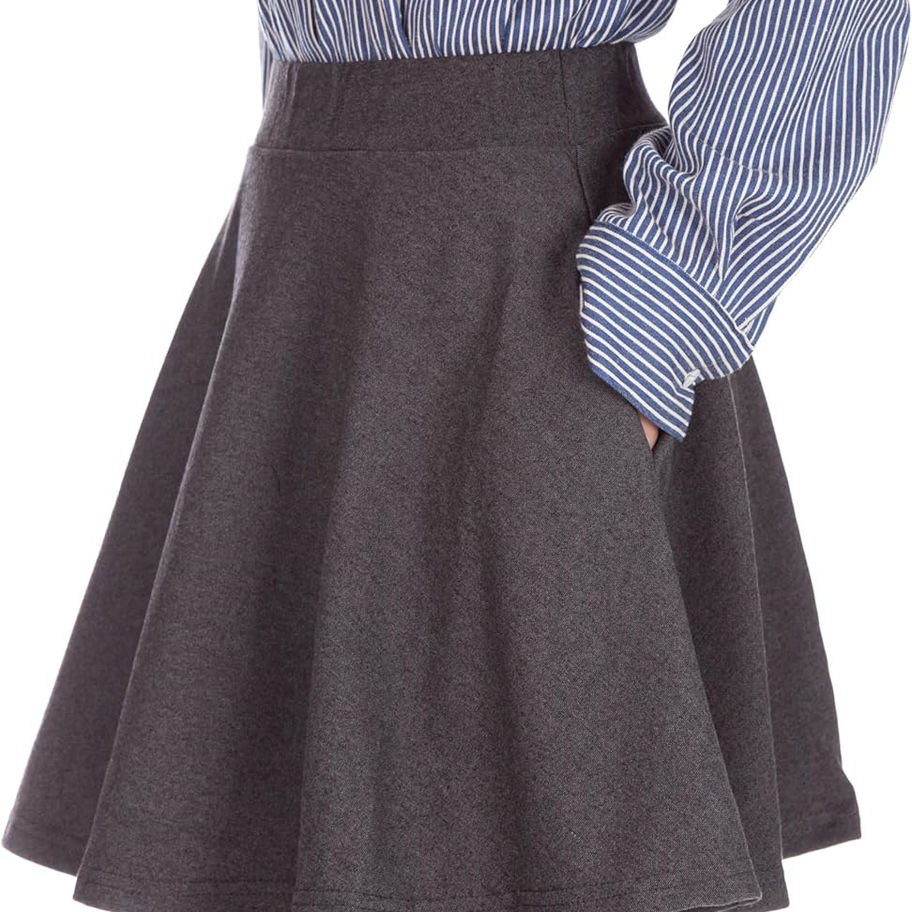 La falda de patinadora debe estar en el armario de toda niña: La falda de patinadora básica se ve muy simple. Pero hay muchas razones por las que la falda ha sido popular por muchos años. La minifalda completa tiene un talle alto. EL talle alto ofrece un ajuste cómodo y hace que la cintura de las mujeres se vea más delgada. Además, la minifalda acampanada tiene una línea completa de falda. Por lo tanto, la falda acampanada produce un flujo hermoso y pliegues encantadores. Además, la silueta de línea A añade un carácter femenino a esta falda circular.