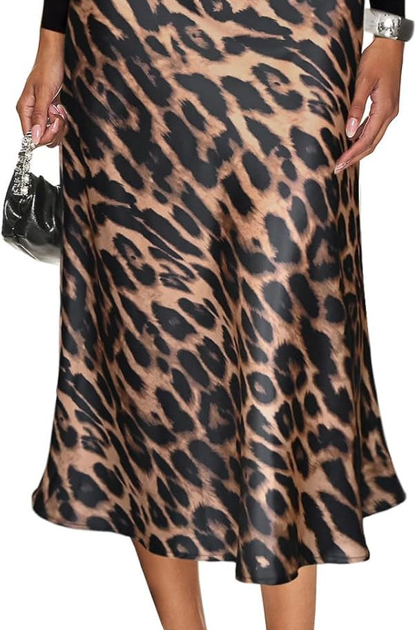 Material: la falda de leopardo está hecha de tela de satén agradable al tacto, transpirable, ligera y sedosa. Las faldas de seda para mujer son lisas y suaves, adecuadas para usar todo el día.