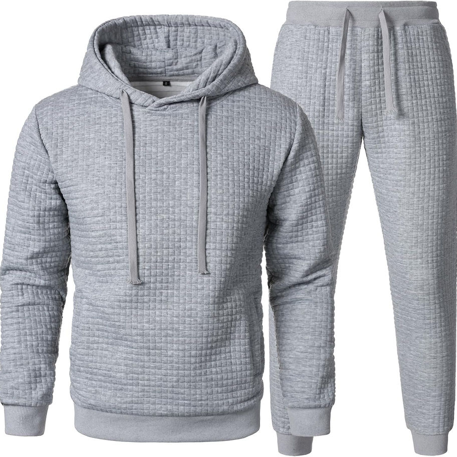 Características del producto: conjunto deportivo para hombre que incluye sudadera con capucha y pantalones deportivos. Sudadera con capucha con cordón y 2 bolsillos de parche; pantalones deportivos con cordón ajustable, 2 bolsillos laterales para llevar llaves, teléfono celular y otros objetos pequeños, etc.