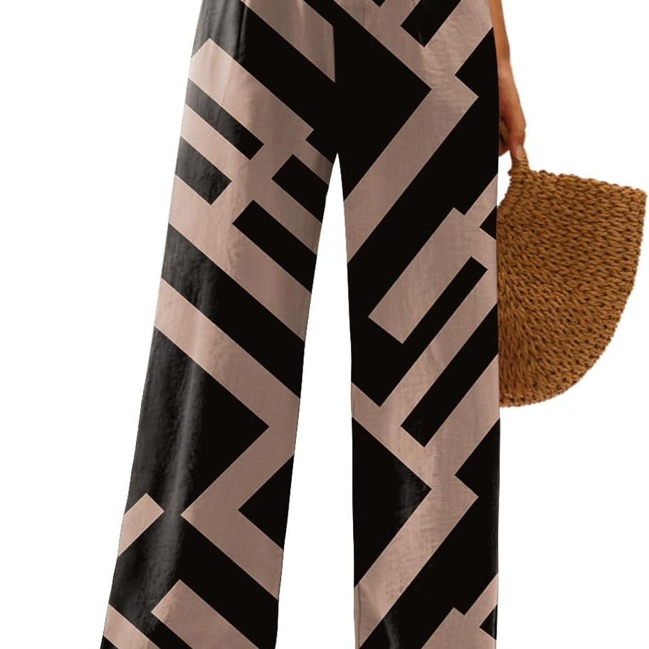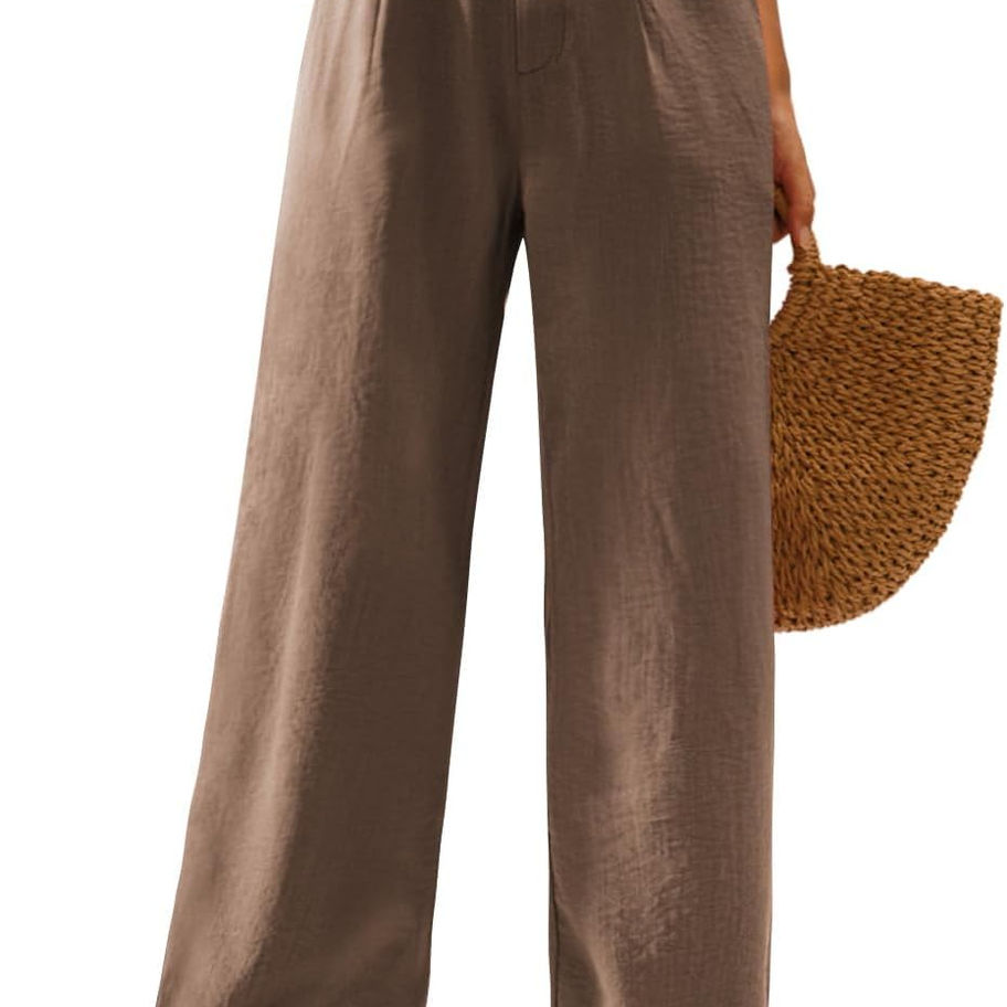 Feiersi Pantalones casuales de pierna ancha para mujer, de cintura alta, con bo