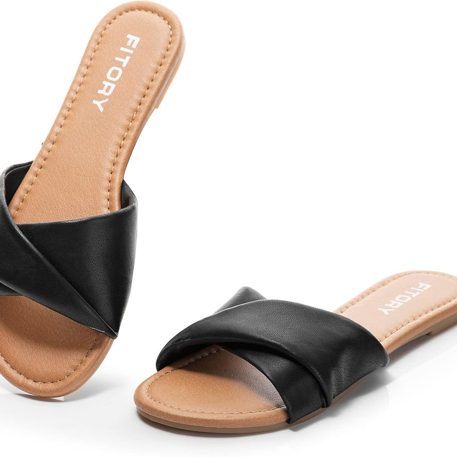 FITORY Sandalias planas para mujer con pantuflas de cuero suave para verano, ta