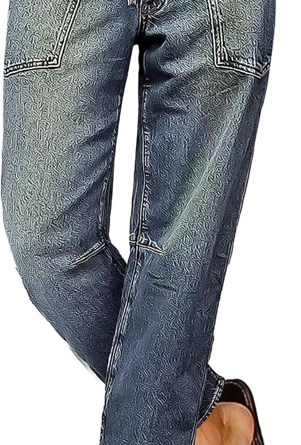 Flamingals Pantalones de mezclilla de pierna recta de cintura media para mujer,