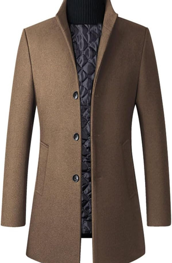 Características: este abrigo de lana de negocios de invierno para hombre está diseñado con cuello alto clásico, manga larga, pecho único, cierre de botón, puño con decoración de tres botones, bolsillos laterales dobles y un bolsillo interior, muy funcional