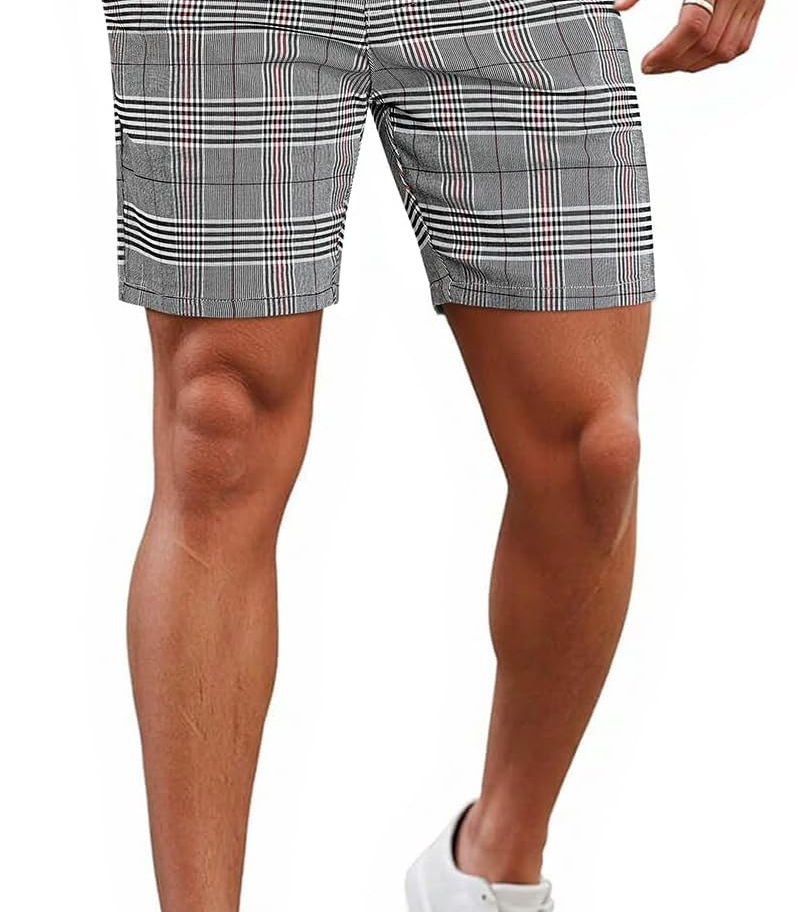 GINGTTO Pantalones cortos ajustados para hombre, a cuadros, chinos, cortos, pie