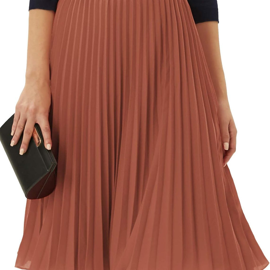 GRACE KARIN - Falda plisada de gasa para mujer, con cintura alta y elástica, vu