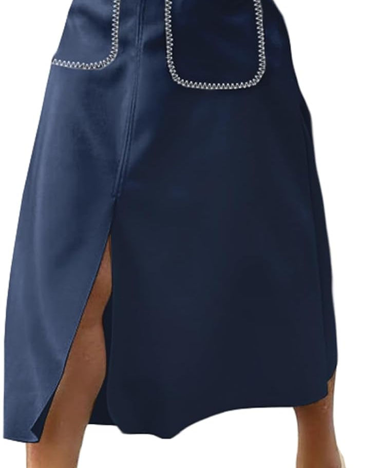 Características: esta falda midi de gamuza sintética cuenta con una elegante abertura frontal y silueta acampanada, falda midi ajustada de cintura alta, ropa casual de negocios que te mantendrá a la moda para 2025. Los bolsillos funcionales se mantienen organizados sobre la marcha con prácticos bolsillos para guardar tus artículos esenciales mientras mantienes tus manos libres.