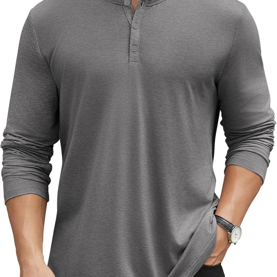 Material: la camisa Henley para hombre está hecha de tela suave, transpirable, agradable al tacto y elástica, la camiseta de manga larga con botones te proporciona comodidad durante todos los días.
