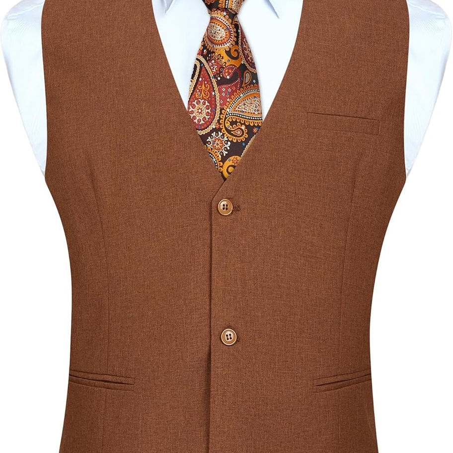 Diseño clásico del chaleco: el chaleco para hombre tiene un diseño único y clásico. Color sólido clásico, cuello en V, cierre de 3 botones y 1 bolsillo real en la parte delantera, 2 bolsillos laterales reales. (Sólo córtalas abiertas) El chaleco ajustable en la parte trasera ofrece un ajuste más preciso