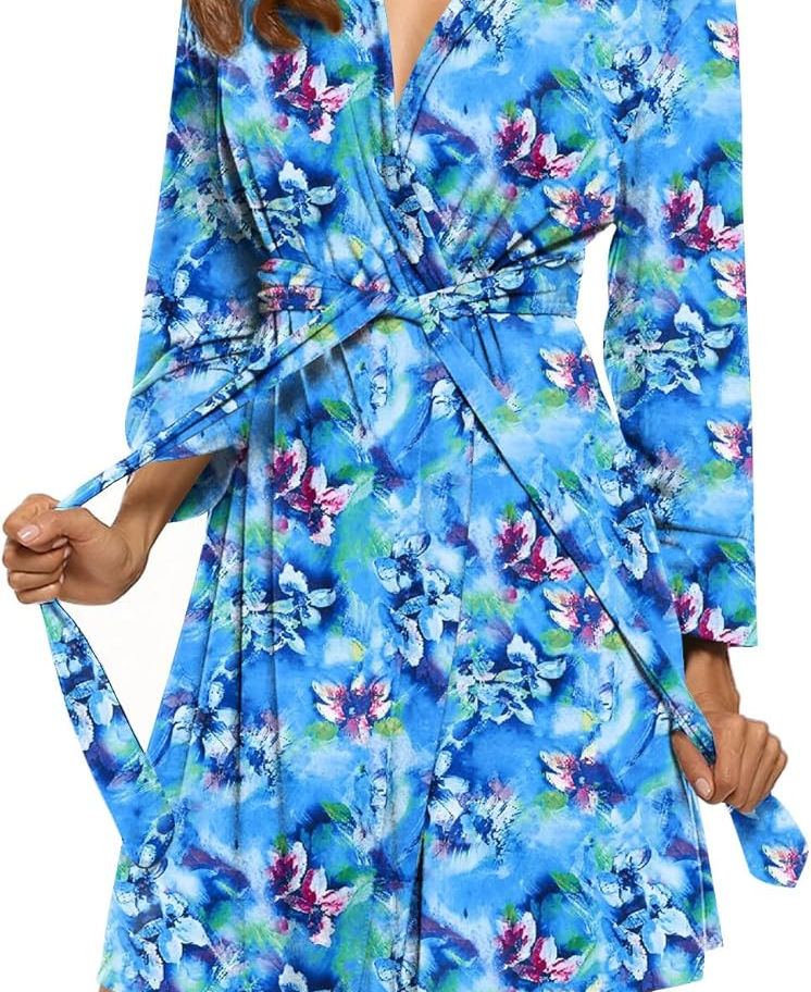 HOTOUCH Bata de baño ligera y corta de punto para mujer, ropa de dormir suave c