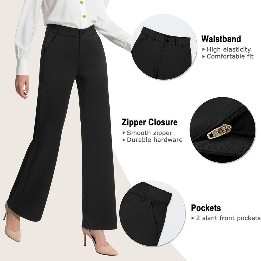 Estilo versátil con características prácticas: Pasa sin problemas de un atuendo de día a uno noche con estos pantalones de pierna ancha de cintura alta para mujer, disponibles tanto en pantalones de vestir de pierna ancha como en pantalones de pierna recta. Ya sea que estés vistiendo para la oficina con pantalones de pierna recta o adoptando un aspecto más informal con pantalones de vestir de pierna ancha, estos pantalones te tienen cubierta. Combínalos con tus camisetas y accesorios favoritos para crear diferentes looks que se adaptan a cualquier ocasión.