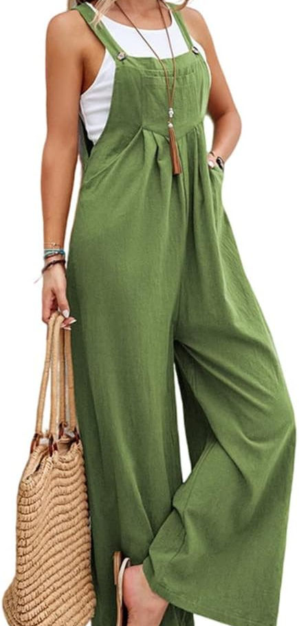 IDEALSANXUN Overol de pierna ancha para mujer, casual, de algodón, lino, holgad