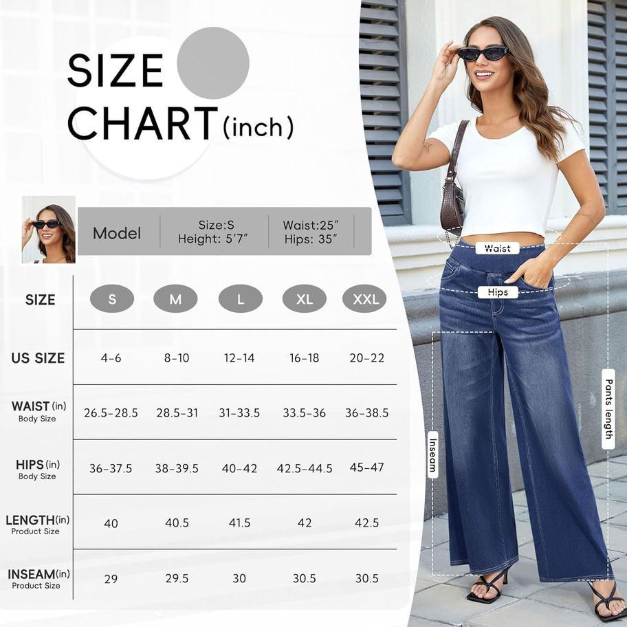 Denim elástico: hecho de tela flexible y de alta elasticidad, estos jeans de pierna ancha para mujer combinan la durabilidad clásica del denim con una comodidad excepcional. La cintura elástica garantiza un ajuste relajado pero favorecedor, ofreciendo un movimiento sin restricciones para facilitar todo el día