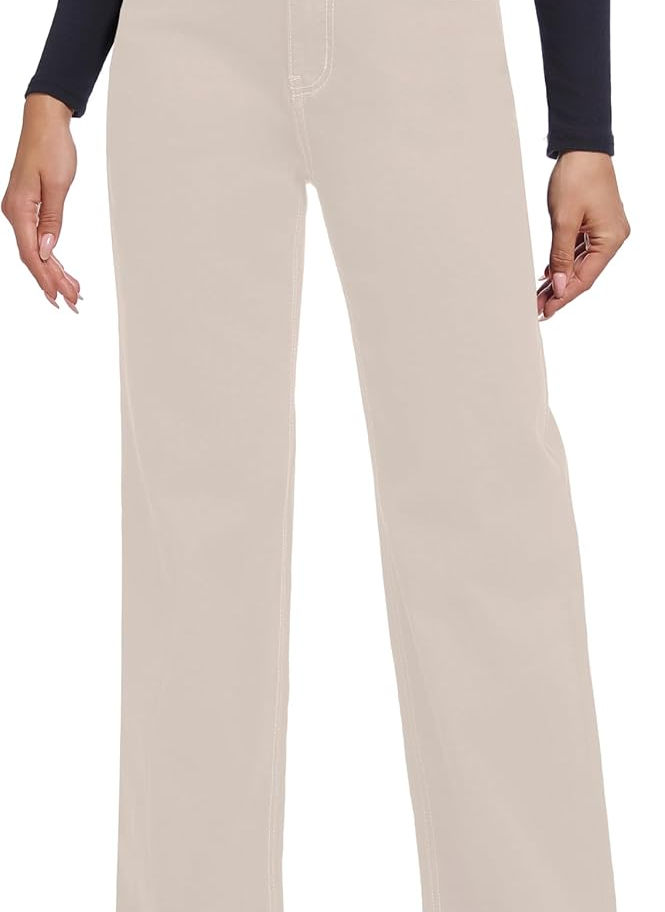 Los jeans para mujer 2025 vienen con proceso de lavado azul claro y diseño recto, 5 bolsillos, diseño de ajuste relajado más cómodo de llevar, casual.