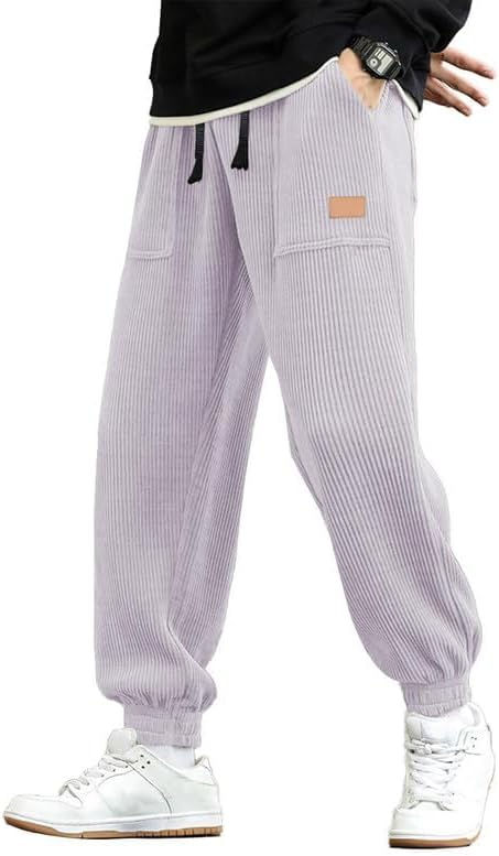 Diseño holgado: estos pantalones deportivos de pana holgados para hombre cuentan con un cordón ajustable, cintura elástica y un corte ajustado en los tobillos, ofrecen un estilo relajado pero elegante. Ligeros, transpirables y duraderos, son perfectos para un estilo de vida urbano y activo. Mantente cómodo y elegante con estos modernos pantalones deportivos.