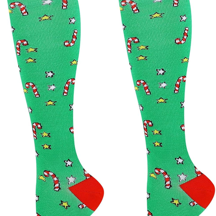 Good-quality and Comfortable Material: Holiday compression socks women are made of 85% nylon, 10% polyester, and 5% elastane. Support socks for women compression provide mild squeezing for muscles. Womens Christmas socks deliver a 360-degree stretch for greater flexibility and durability to reduce fatigue for your legs. Our compression socks are intended for daily use only