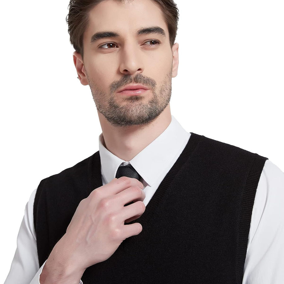 Kallspin Suéter de punto sin mangas con cuello en V y mezcla de lana para hombr