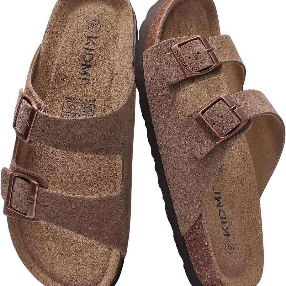 KIDMI Sandalias de gamuza genuina para mujer con soporte de arco, plantilla de