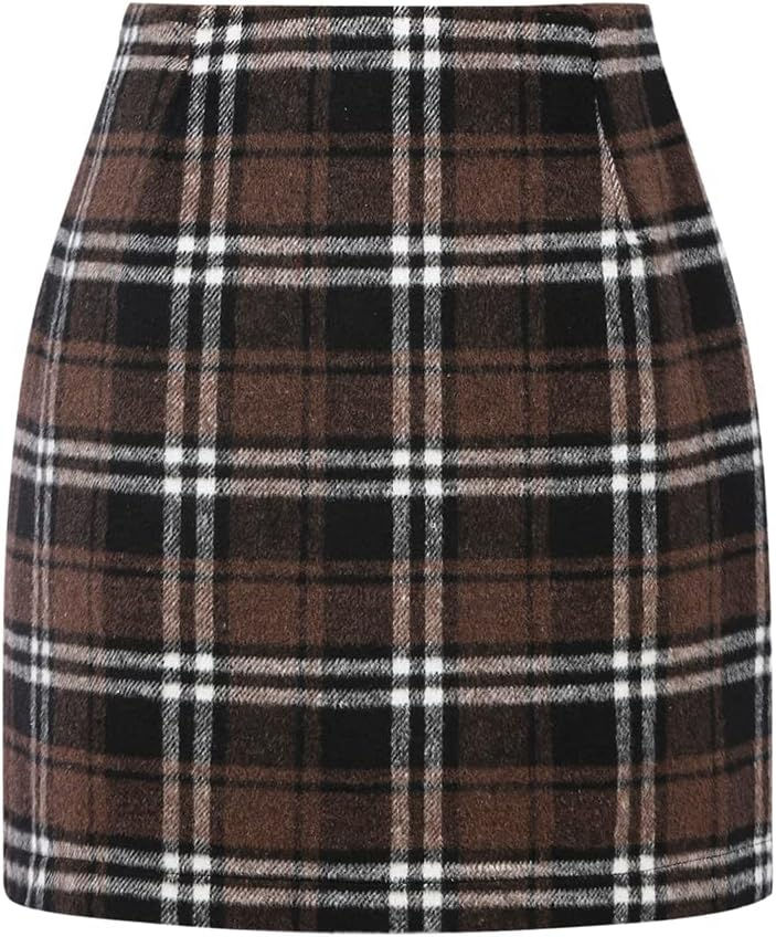 Kinghua - Minifalda de lana con estampado de cuadros para mujer, para otoño e i
