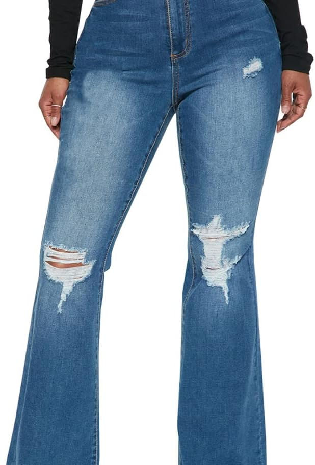 Diseño: diseño clásico de 5 bolsillos con cremallera y cierre de botón, dobladillo ancho acampanado y dobladillo sin procesar que crean diferentes sentidos de moda, tela de mezclilla suave y elástica, cómoda de llevar