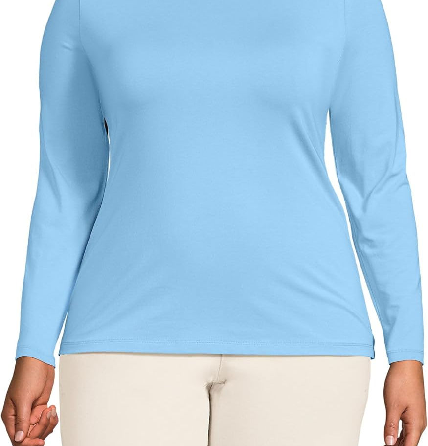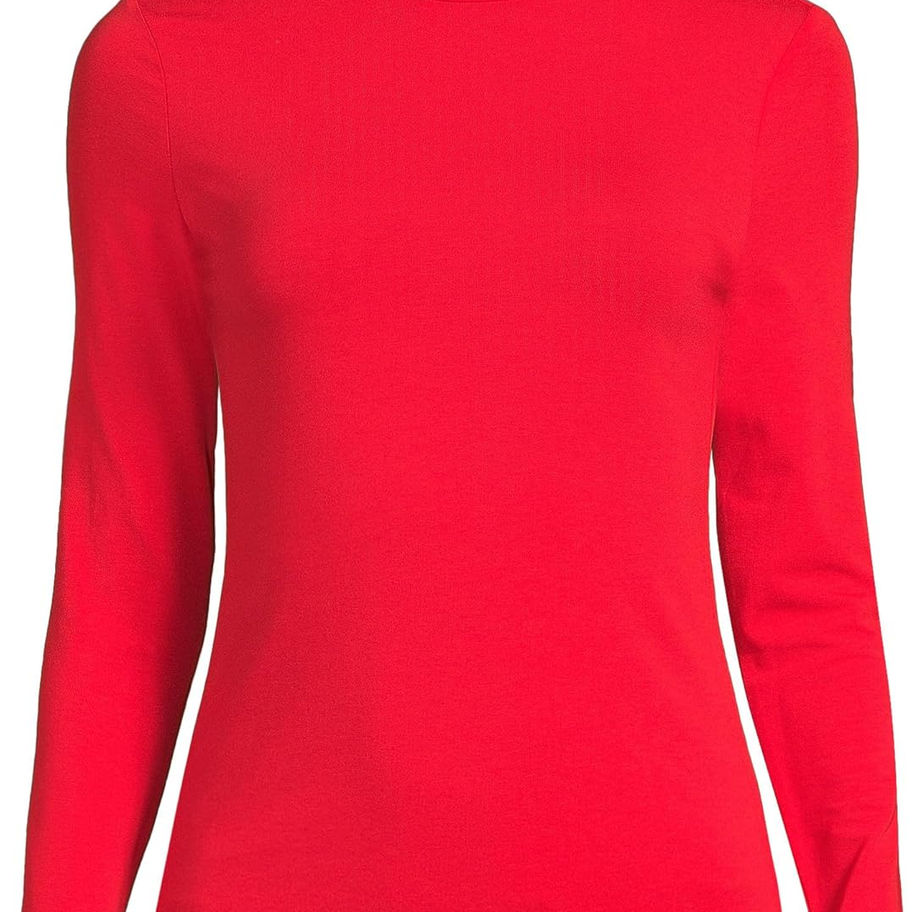 Lands' End - Suéter ajustado, ligero, de cuello alto y manga larga para mujer