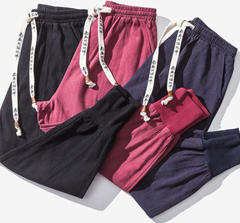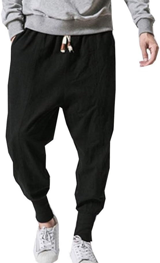 LifeHe Pantalones harén holgados de pierna ancha con entrepierna caída de lino