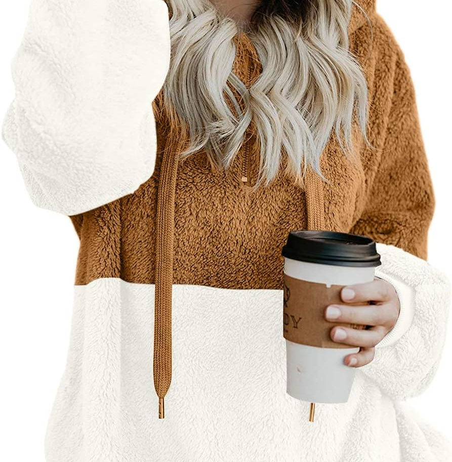 ❤ 【Características】Sudadera con capucha para mujer, manga larga, cordón, cremallera de 1/4, dos bolsillos grandes en los lados, longitud a la cadera, material que no irrita la piel, tela suave, cómoda y cálida.