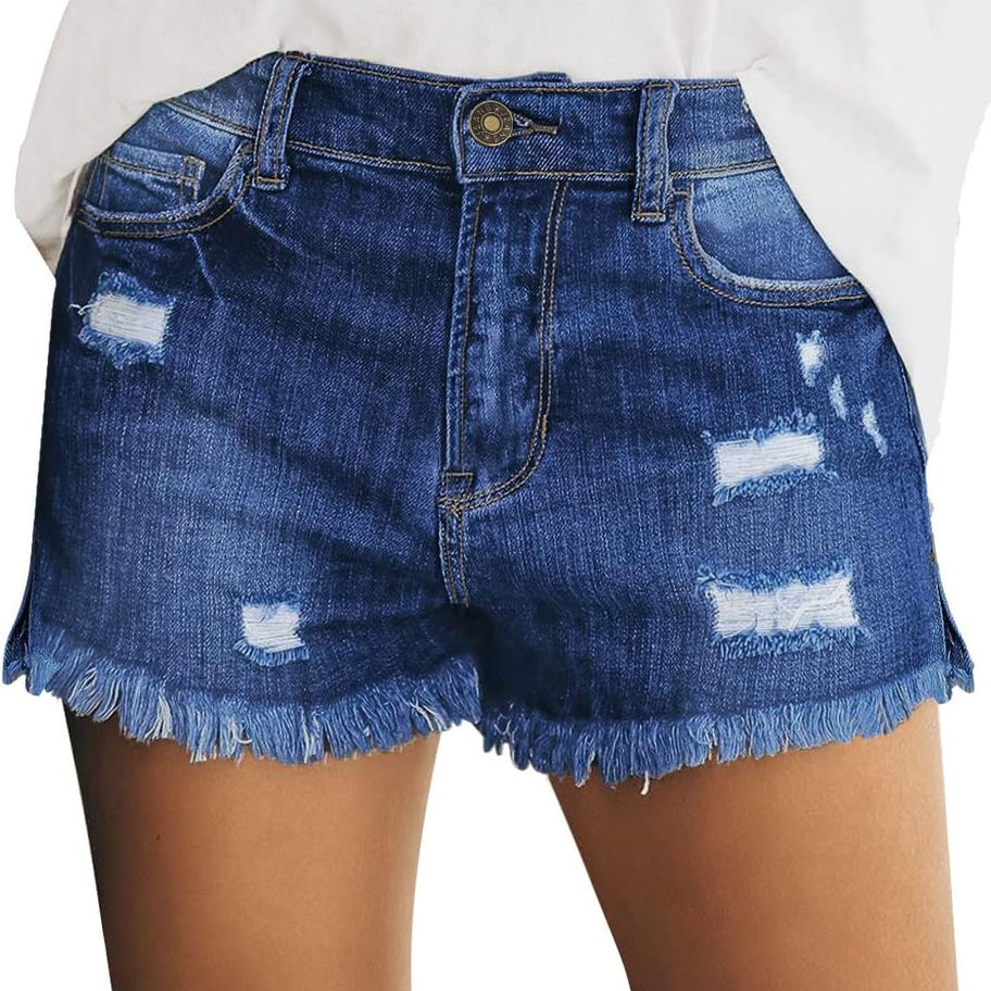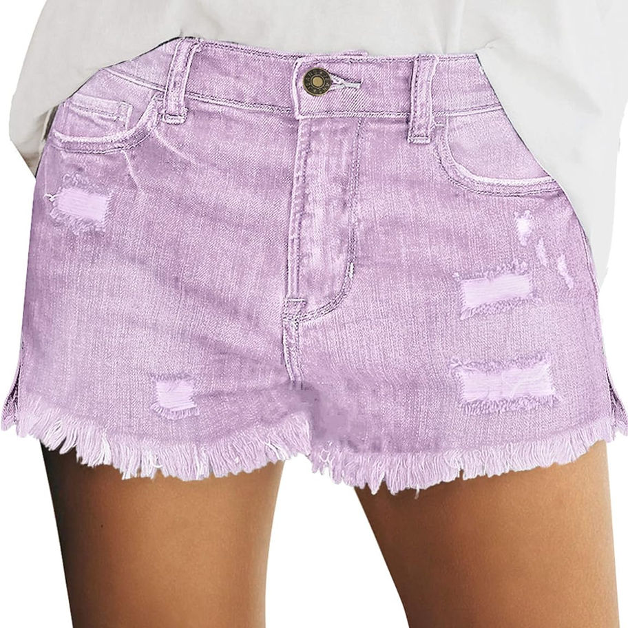 luvamia Pantalones cortos de mezclilla de tiro medio para mujer, estilo casual,