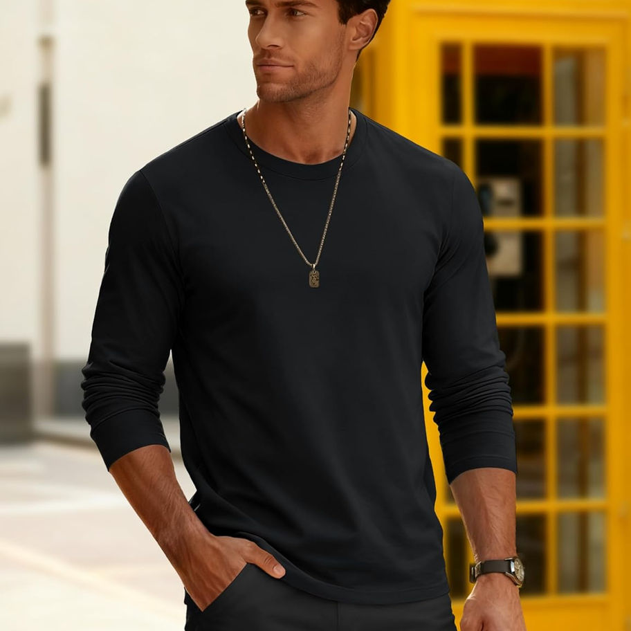 Diseño clásico de cuello redondo: con un cuello redondo suave, esta camisa de manga larga ofrece un ajuste no restrictivo alrededor del cuello para comodidad durante todo el día. El diseño clásico del cuello hace que sea ideal para usar en capas o solo, funcionando perfectamente como un básico casual y una base lisa debajo de otras prendas.