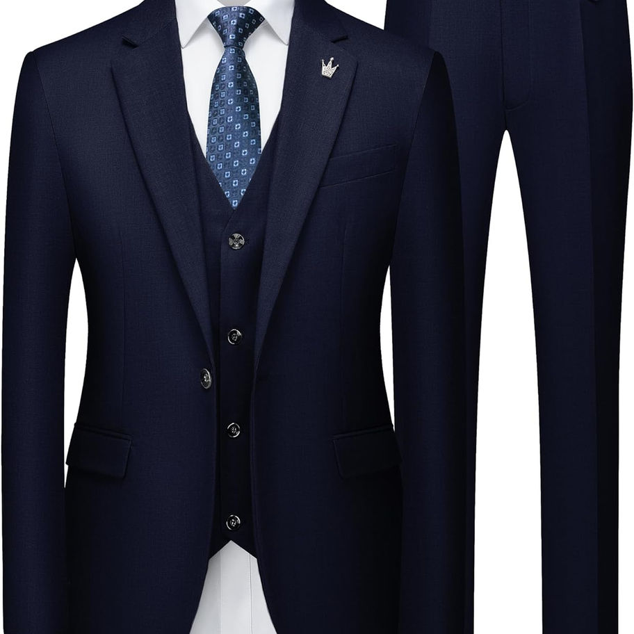 MAGE MALE Traje de esmoquin de 3 piezas para hombre, ajustado, con un botón, só