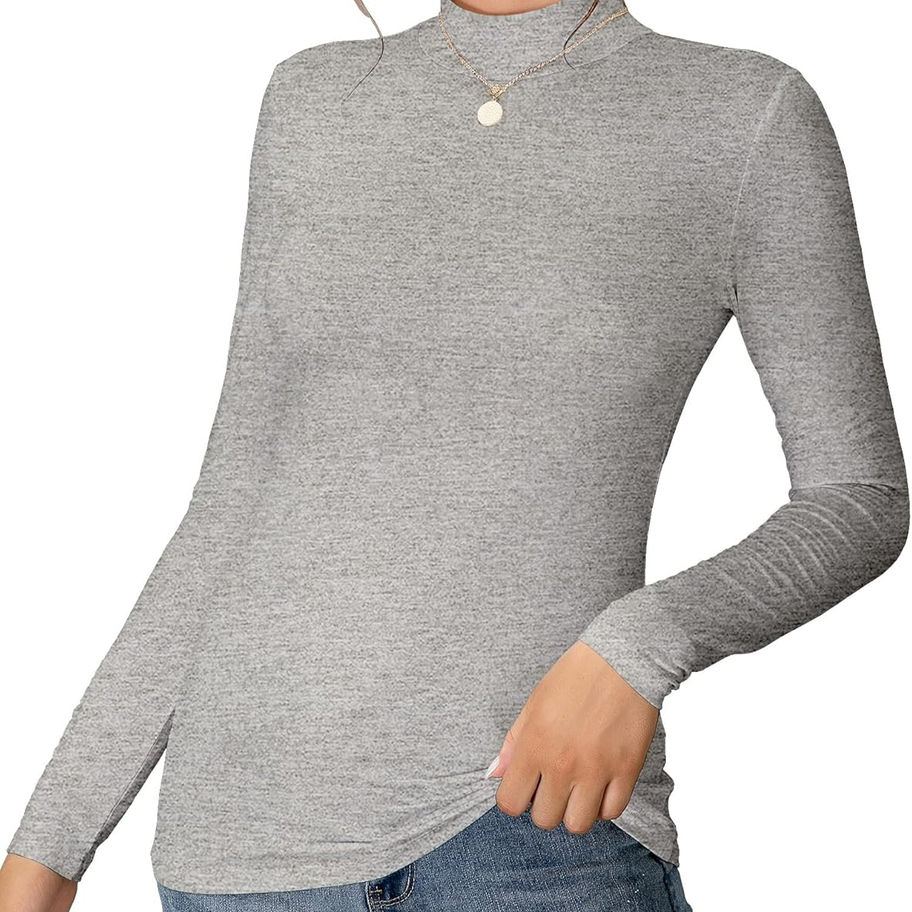 La blusa básica y ligera para mujer cuenta con cuello alto falso, ajuste delgado, camiseta de manga larga, sólida y ajustada, camisa de manga larga, parte superior de capa ligera, textura súper suave, tela elástica, transpirable, cómoda de llevar.