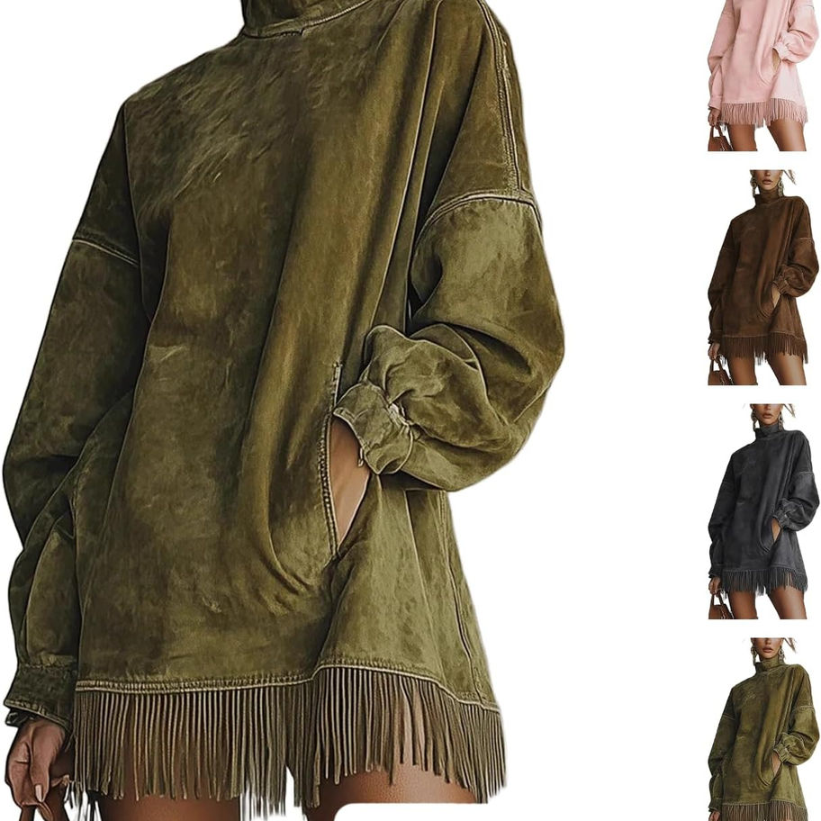 【Lujoso minivestido de terciopelo con detalles de borlas】Abraza el encanto occidental vintage en este vestido de terciopelo suave, con elegantes detalles de borlas, perfecto para reuniones de otoño o fiestas de vacaciones