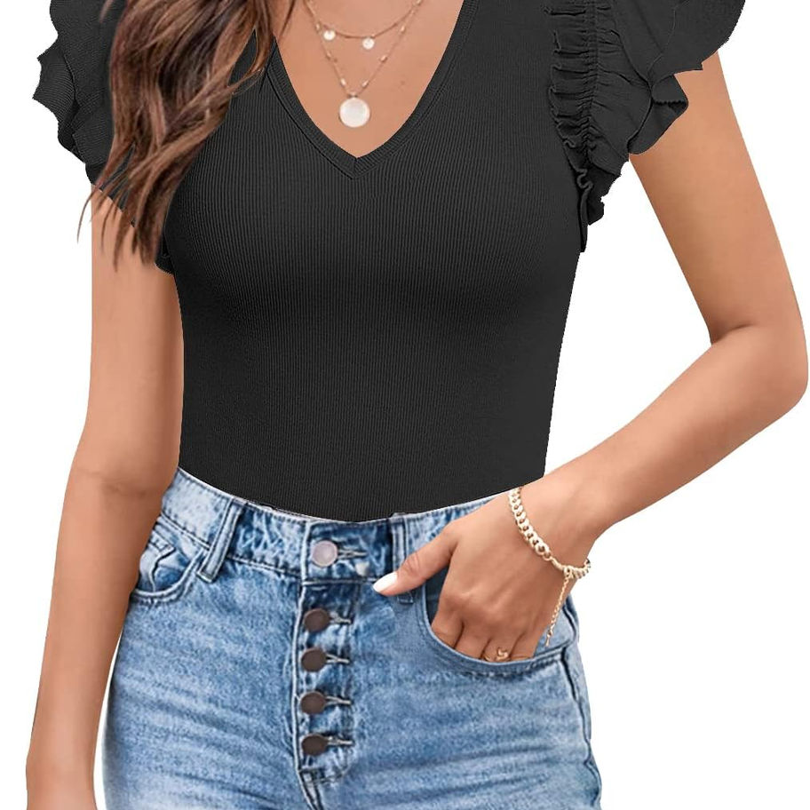 Características: body de cuello en V con mangas con volantes, overol básico de manga corta, color sólido, moderno y elegante. 2 glúteos a presión en la entrepierna, fácil de vestir pero también elegante y casual. El body moldeador para mujer es adecuado para todas las estaciones, verano, primavera, otoño e invierno.