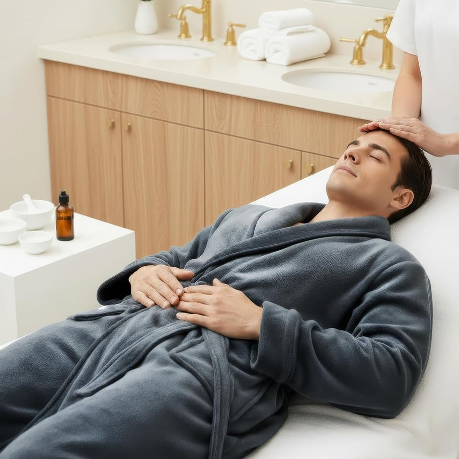 NY Threads - Bata de baño de vellón para hombre, larga, con cuello estilo chal