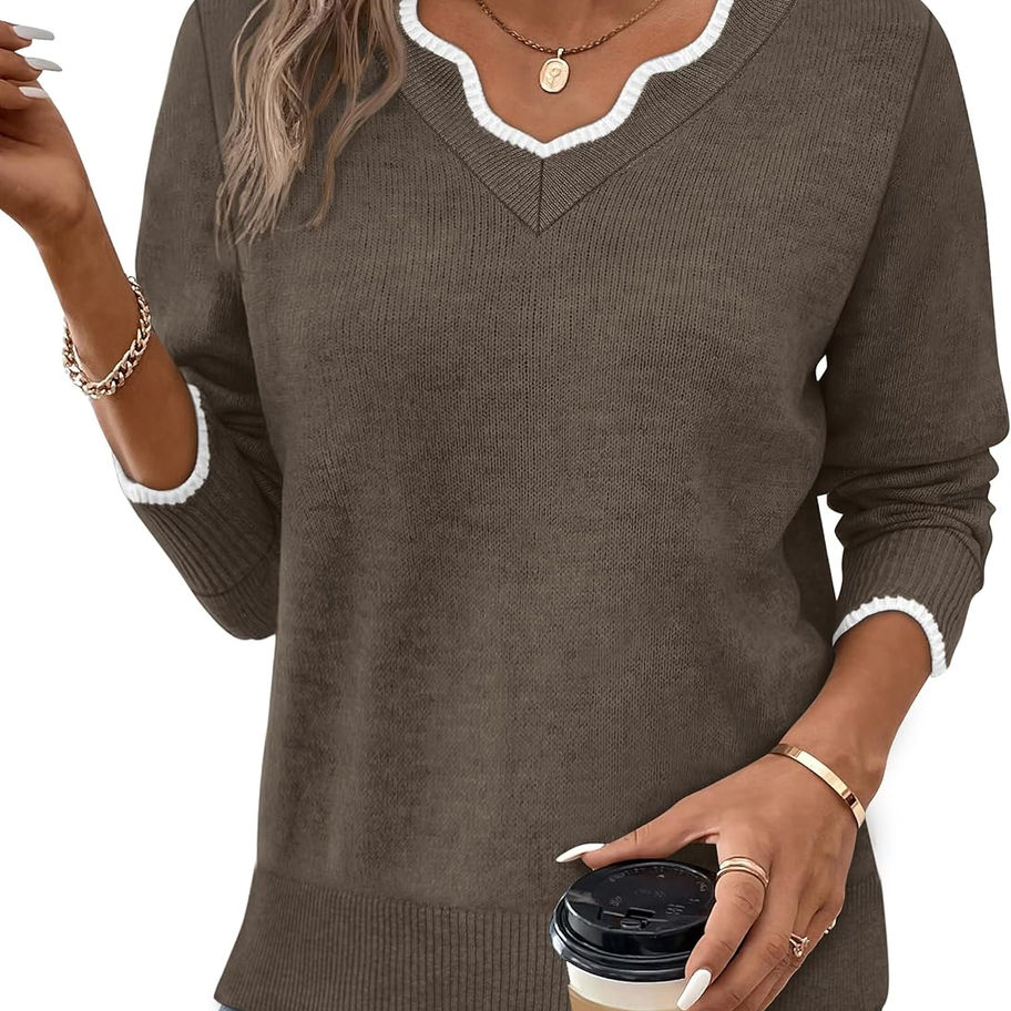 OFEEFAN Suéteres con cuello en V para mujer, suéteres cómodos y ligeros, de man