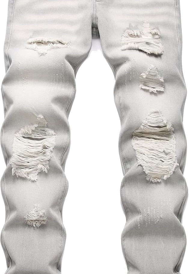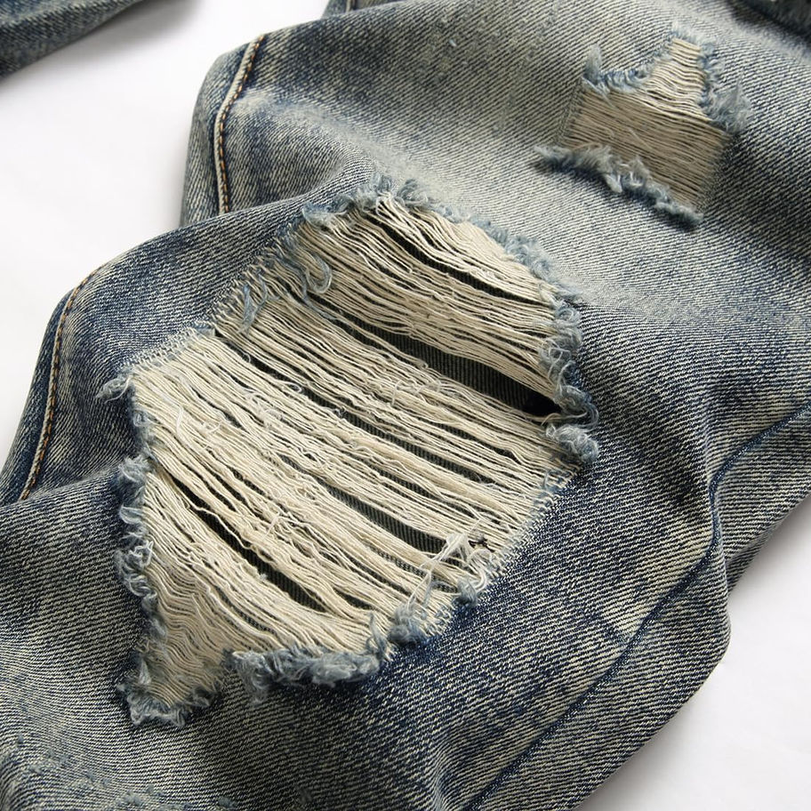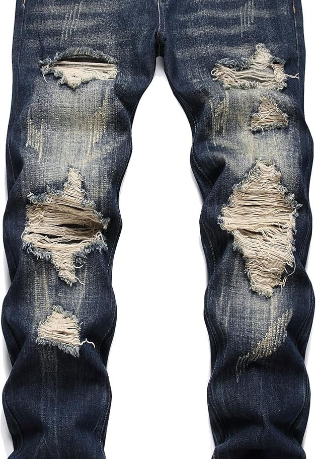 OIIIO Pantalón vaquero de pierna recta rasgados para hombre