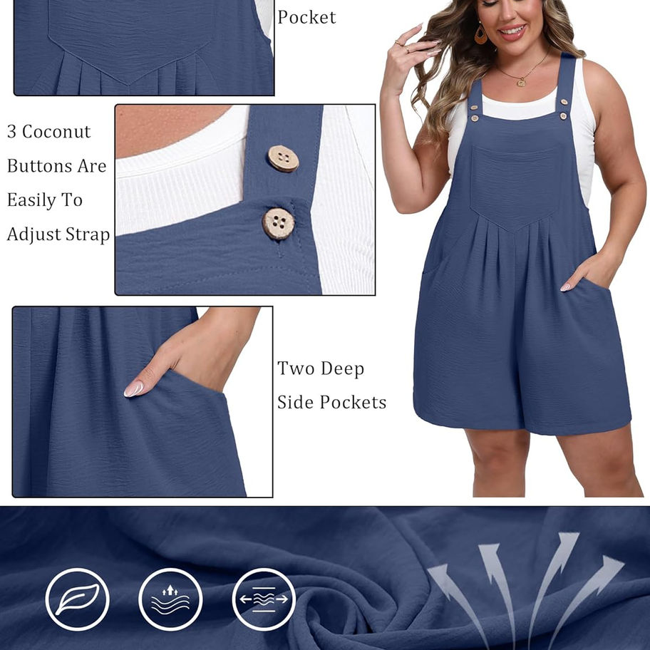 OLRIK Women Plus Size Romper Casual Jumpersuit Overall Shorts with Adjustable S