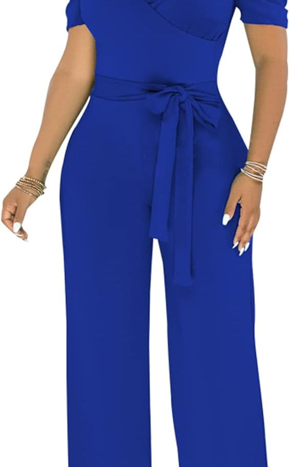Diseño elegante: sexy sin espalda, cuello en V profundo, diseño de manga corta, mameluco de pierna ancha de talla grande, overol de cintura de una sola pieza. Muestra tu escote sexy y clavícula haciéndote más atractiva, te ayuda a mostrar tu encanto único, todos los diseños únicos están hechos solo para tu belleza.