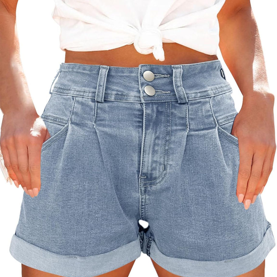 Pantalones cortos de mezclilla casuales de cintura alta con bolsillos para mujer