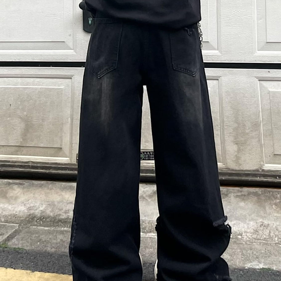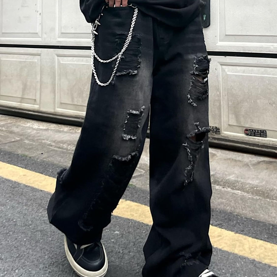Pantalones de mezclilla holgados para hombre con agujeros desgastados de pierna
